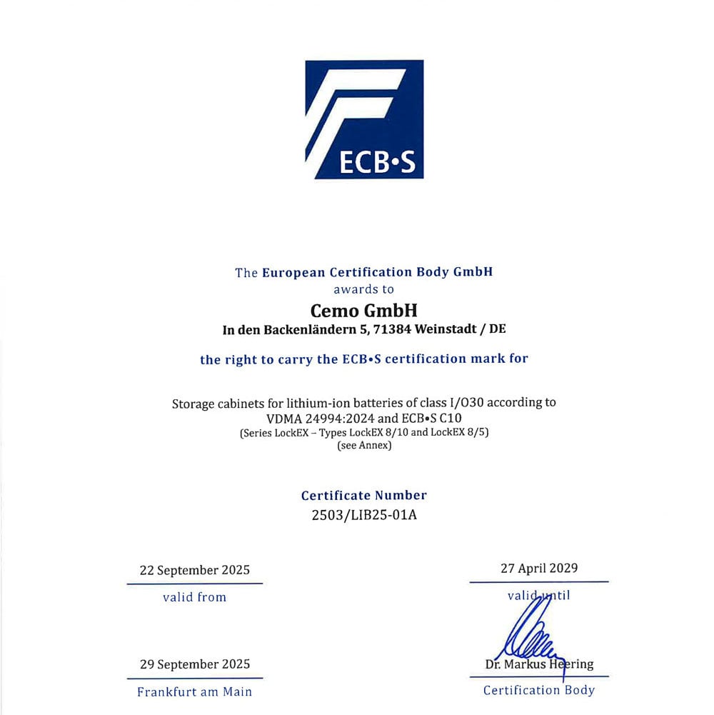 TÜV NORD for Akku-Systembrandschutzbox Li-SAFE